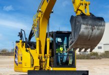 The tractor loaders are also available with a factory-installed grade indication option. This provides an on-board readout of the machine cross slope and main fall slope in real time, all within the existing machine’s display. The integrated solution requires no additional hardware or software.